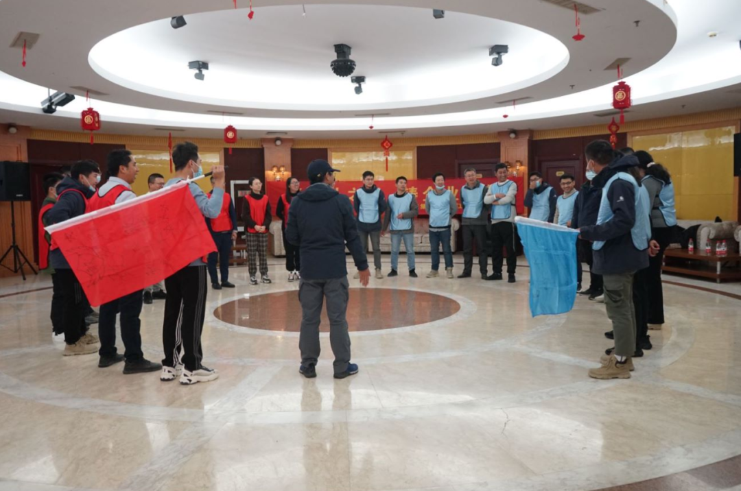 隨著董事長和教練的開場,來自不同項目部、不同部門的同事們組成了各個隊伍,這樣的組隊方式是為了消除同事間的陌生感,打破部門間的壁壘;
